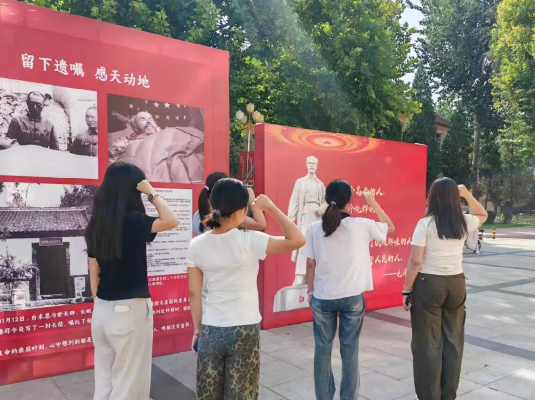 活动现场,同学们怀着崇敬的心情有序参观展览。一幅幅珍贵的历史照片、一段段详实的文字资料,清晰展现了以白求恩、马海德为代表的国际共产主义战士远渡重洋、投身中国抗日救亡事业的伟大历程。同学们深刻体悟到“毫不利己、专门利人”的精神内涵,并从毛泽东同志对白求恩“一个高尚的人,一个纯粹的人,一个有道德的人,一个脱离了低级趣味的人”的高度评价中,感受到医者精神的崇高境界。
