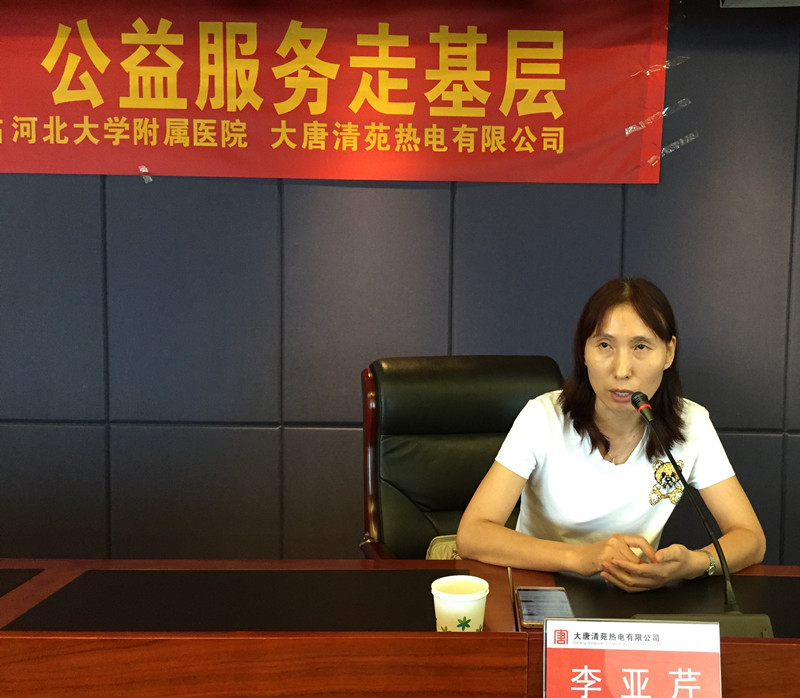 7月25日,“保定责任”健康专家、我院心血管内科二病区副主任医师李亚芹走进大唐清苑热电有限公司,为一线在岗职工进行了心血管疾病预防公益文化健康讲座。大唐清苑热电有限公司纪委书记、工会主席刘冰为活动致辞并全程聆听健康讲座。