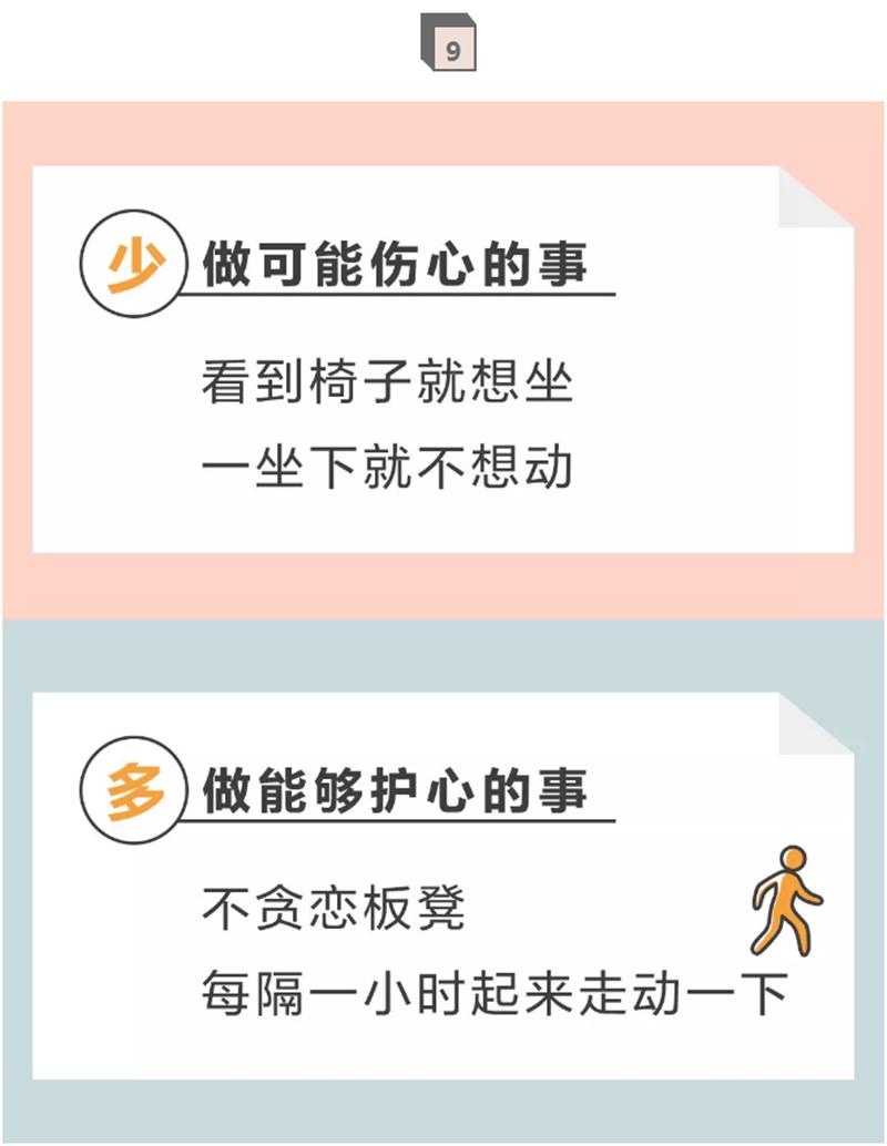 解释:每周3~5次低、中等强度的运动,有助于增加心脏功能,改善血管弹性,增强机体对心血管疾病的耐受性,保护心脏。