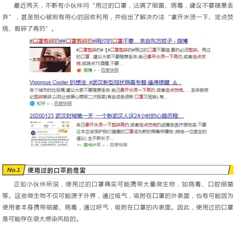 【新型冠状病毒科普知识】使用过的口罩该怎么处理?发布时间:2020/2/4 14:40:00       浏览次数:3925次