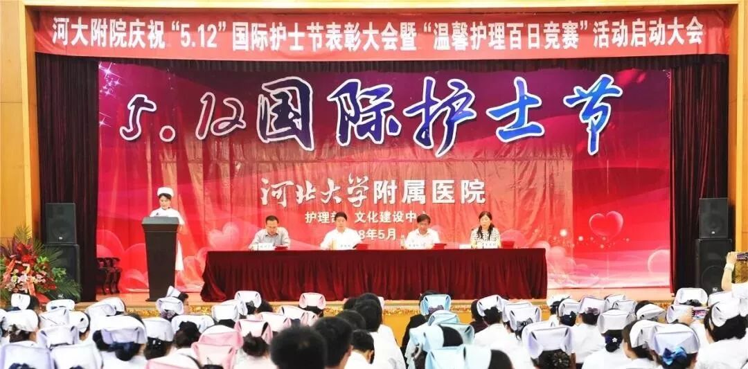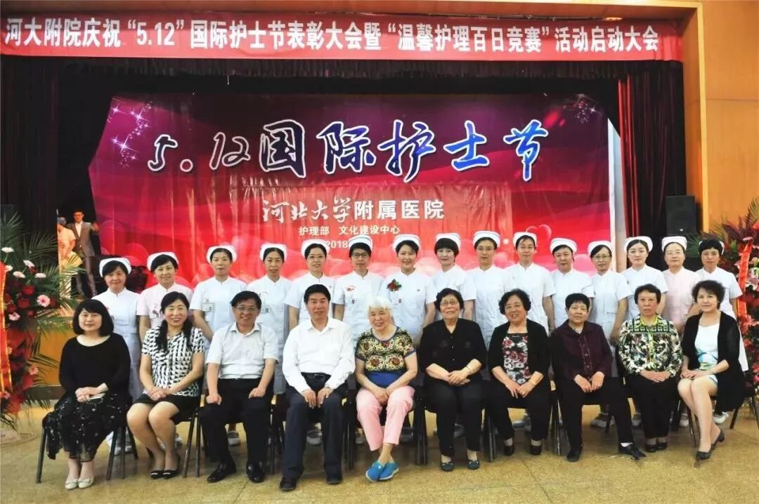 为纪念“5.12”国际护士节,弘扬南丁格尔精神,展示护理队伍风采,5月11日下午,我院在大礼堂召开纪念“5.12”国际护士节暨“温馨护理百日竞赛”活动启动大会。河北大学副校长、我院党委书记申世刚,院长张海松,副院长程树杰、朱惠娟与我院护理老前辈、护理人员代表200余人欢聚一堂,共同纪念这个特殊的日子。大会由护理部主任齐新荣主持。