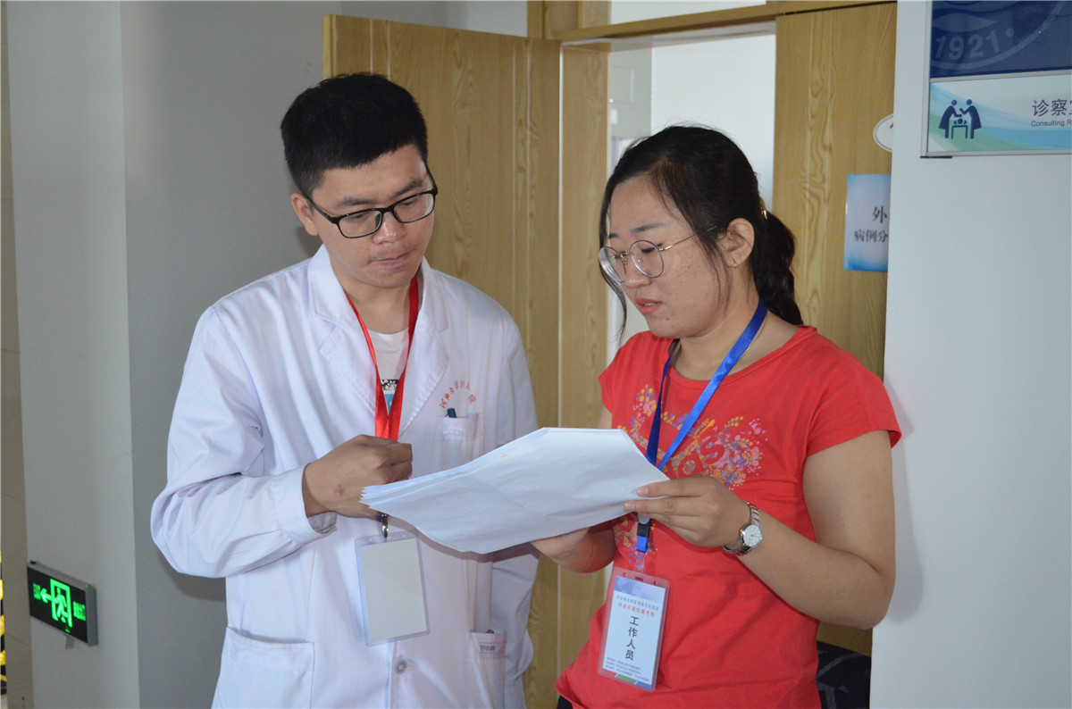 河北省卫生计生委科教处副处长刘丽,考试培训中心任素香,我院院长张海松、河北大学医学院副院长张春舫,河北大学医学院住院医师规培办公室主任李鹏等全程参加指导考试过程。考核期间,考务组成员每天早上六点半便早早来到考场检查各项工作的准备情况,叮嘱工作人员认真核对、做好服务,中午与工作人员一同简单用餐后放弃休息时间,加班加点做好考务工作。每天考核完成后,考核组和工作人员都要探讨总结相关经验,直到晚上九点才离开考场。我院102名考官不辞辛劳,延长下午工作时间,在三天内顺利完成考核任务,大大减少了考生及各类人员耗费的时间精力。我院、河北大学医学院对考核工作高度重视,考前多次召开协调会,认真讨论研究制定考试流程草案,科学的进行考站专业设计,对考官进行考前培训,对各类考务人员进行组织培养工作。针对考试资料物资后勤保障,安全保卫性工作制定详细计划。各工作人员职责分工明确,设计制作严细详实的考官手册、考生手册、工作人员手册、考试流程图、考场示意图等分发到位,为考试的顺利完成打下良好的基础。