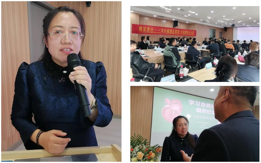 10月29日,中国医药教育协会学雷锋志愿服务5队3名队员:“保定责任”健康专家、主任医师、河北大学附属医院(以下简称“河大附院”)神经内科一病区首席医师史福平,副主任护师、河大附院急诊医学科护士长李红梅,急诊医学科主管护师安国静,走进保定市企事业单位治安保卫协会,借助现场、专属性微信群、网络直播等多渠道,面对金融、学校、文博、仓储物流等协会会员单位的保卫干部,以《知因为预 互助安康》为主题,进行脑血管疾病预防公益文化健康宣讲与急救技术实训。保定市妇联常委、“保定责任”公益文化健康服务平台策划人魏巍全程主持。保定市企事业单位治安保卫协会秘书长李英成全程做服务保障。