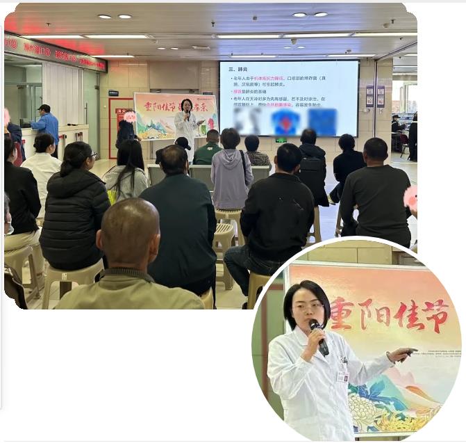 老年医学科主治医师方超为老人们讲解了重阳节的传统文化,并重点讲解了秋冬季节老年人保健的科普知识,指出在寒冷的冬季到来之际,老人们要重点预防心肌梗死、脑卒中、呼吸道感染、骨折等疾病,并强调日常生活的注意事项,老人们纷纷表示受益匪浅。