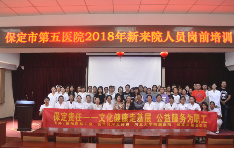 9月10日,“保定责任”公益文化健康服务走进保定市第五医院,健康专家、我院消化内科首席医师鲁素彩以“健康消化,舒心生活”为题,为该院新入职的年轻医生、护士进行了胃肠道心身疾病预防公益文化健康讲座,以此让新入职医护人员能够以健康的心身融入到集体、投入到为人民服务的医疗事业中。