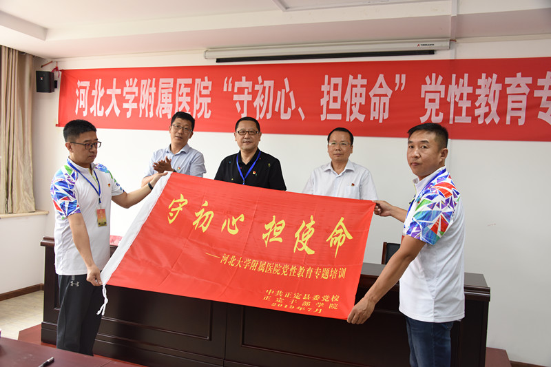 为热烈庆祝中国共产党成立98周年,深入贯彻习近平新时代中国特色社会主义思想和党的十九大精神,全面推动从严治党向基层延伸,充分发挥基层党组织战斗堡垒作用,7月2日开始,院党委组织全院各党总支部书记、党支部书记分两批赴河北省石家庄正定县开展“守初心、担使命”党性教育专题培训。我院党委副书记陈冰、纪委书记赵燕玲分别带队,出席开班仪式并讲话。