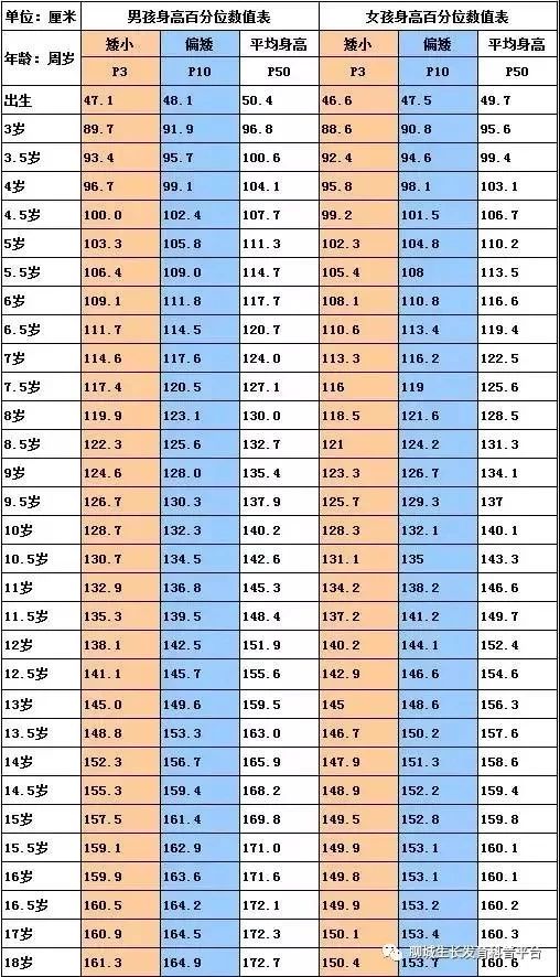 3—18岁身高标准对照表