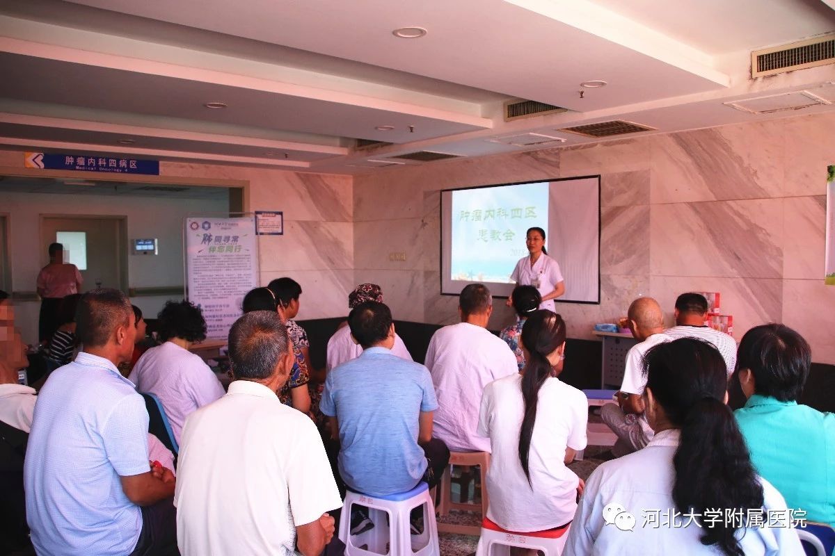 肿瘤内科四病区的患教会每次都受到患者和家属的好评,本次患教会旨在把肿瘤科普知识传播给更多的人,让更多的人从中受益。科室决定患教会采用开放式,期间患者及家属可以自由参加,方便每一位患者和家属。