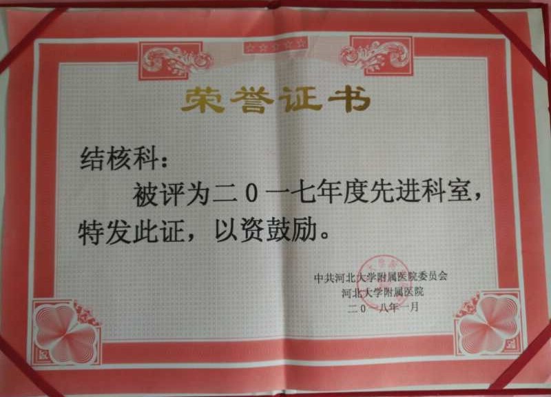 结核科被评为2017年度先进科室。
