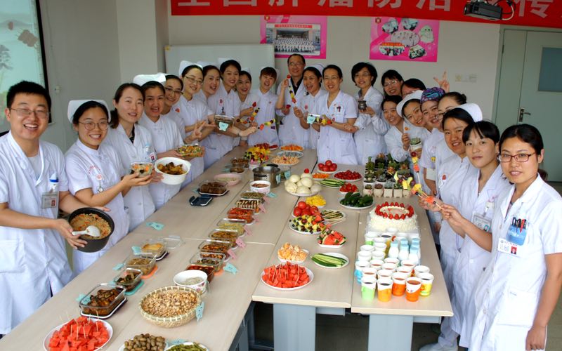 “5.12国际护士节”来临之际,为庆祝护士们自己的节日,肿内一区杨华主任、宋艳茹护士长在繁忙的工作之余精心策划了“医护一家亲,厨艺大比拼”聚餐活动,并热情邀请肿瘤内科臧爱民主任担任评委亲情加入,全科医护人员深切感受到心贴心的浓浓祝福!
