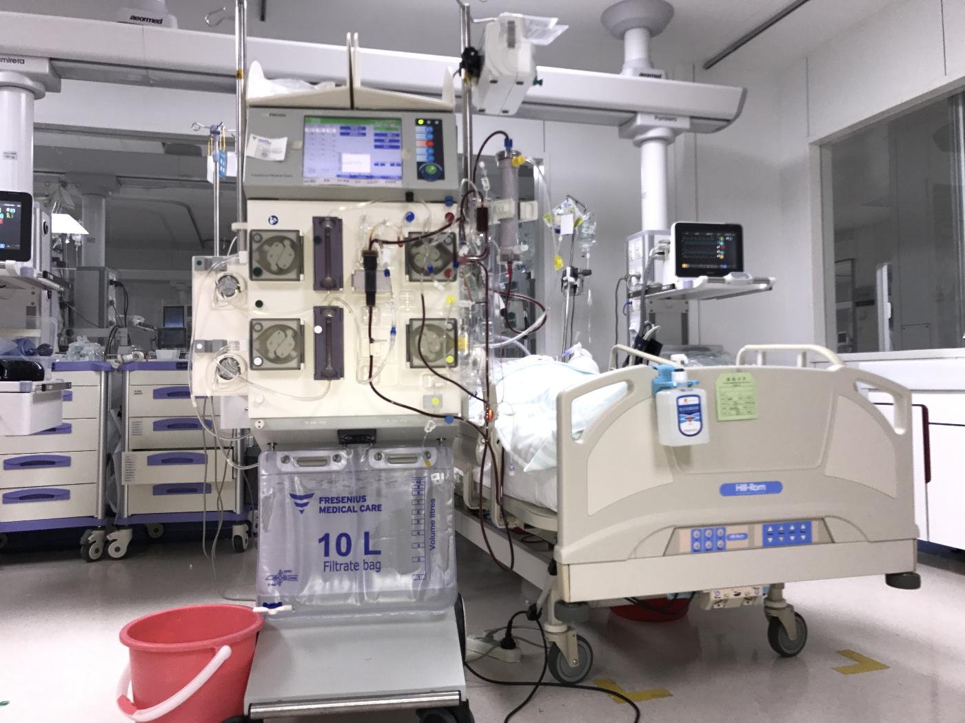 连续性肾脏替代治疗(CRRT):科室自2011年开展CRRT治疗技术,经过多年的发展已较为成熟,每一位医生及护士均能熟练掌握血液滤过、血液灌流及血浆置换,CRRT在脓毒症及脓毒症性休克、急性肾功能衰竭、重症急性胰腺炎、急性肝功能不全、重症肌无力、吉兰-巴雷综合征、急性中毒、严重内环境紊乱等方面发挥了重大作用,极大地提高了重症患者抢救的成功率。科室于2017年成功开展保定市首例Ci-Ca局部枸橼酸抗凝下的连续性肾脏替代治疗(CRRT),开辟了保定重症医学枸橼酸抗凝技术的先河,极大降低了患者的出血风险。