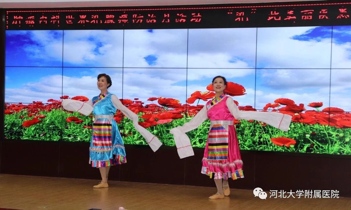 随后,精彩的文艺汇演及科普宣传由患友李女士和杨阳医生共同主持。怀着“呵护生命,绽放美丽”的美好心愿,一曲由医护人员与乳癌患者们共同演绎的大合唱《同一首歌》,率先拉开帷幕。富有新意的知识讲座《肿内病房那些事儿》,更是以小品的形式和大家见面,为患者们进行了乳腺疾病甄别、乳癌患者饮食宣教及康复锻炼的科普答疑,让患者们在笑声中得到了知识的积累。“韭兰花开”爱心团队还为大家奉上了抖空竹表演,以及双人舞《卓玛》,更好地诠释了生命在于运动的真谛。患者李女士的诗朗诵《相信未来》深情道出了广大癌症患者珍爱生命,重塑自我的心声。患者吕女士改编、史女士演唱的《你的爱——献给肿内一病区的歌》,表达了长久以来患者们对肿瘤内科医护人员的信任和感激,令在场之人无不动容,现场气氛达到高潮。医护人员们倍受鼓舞,特将一首饱含温暖关爱的《给你们》回馈给广大的患者及家属,感谢大家对生命的尊重,以及对肿瘤内科“世界乳腺癌防治月”粉红丝带运动的支持。活动的最后,陈冰与患者杨女士以一首《爱的奉献》为此次活动画上了圆满的句号。此次活动,医患同心共同携手,用自己的实际行动积极响应习近平主席的号召,共筑健康梦,中国梦,将爱的种子播散到每一个人的心中!