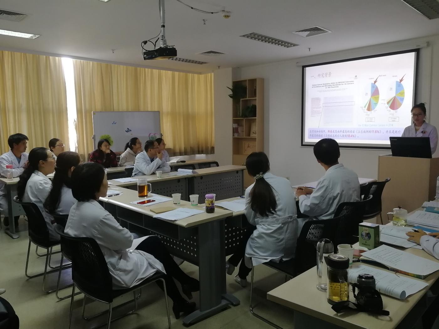 2018年11月1日,根据河北大学医学院硕士研究生学位论文开题相关文件要求,肿瘤学专业研究生在科内进行开题答辩。本次开题由臧爱民主任主持,参加成员有商琰红副主任医师,王志宇副主任医师、宋子正副主任医师,窦征岳主任医师,栾天燕副主任医师和贾友超副主任医师。