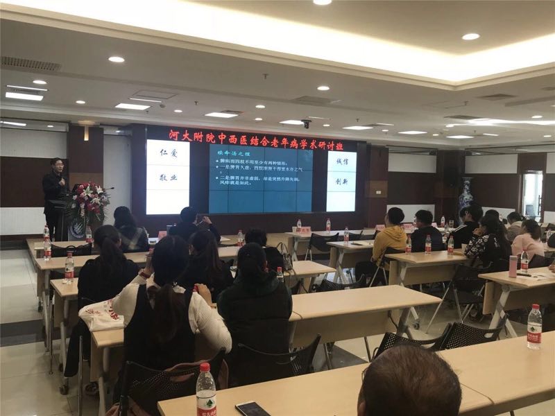 中西医结合老年病学术研讨班于2018年10月27日在我院顺利召开,我院院长张海松出席了会议并发表讲话,来自保定市各级医院及保定市周边县级医院的医生近200人参会。会议由中西医结合科主任赵永辰主持。
