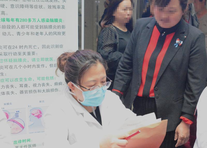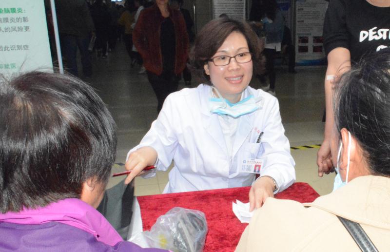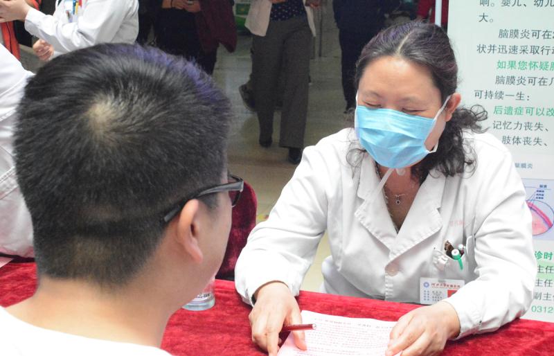 2019年4月24日,为迎接“世界脑膜炎日”的到来,呼吁更多人关注脑膜炎患者,重视脑膜炎的预防,普及脑炎及脑膜炎常识,使更多人了解并关注这类疾病,河北大学附属医院神经内科一病区在门诊一楼门诊大厅举办了主题为“关注健康,关注世界脑膜炎日”的义诊活动。活动引起了广大群众的兴趣,现场咨询氛围活跃。在义诊现场,邸卫英主任耐心解答每一位咨询者的问题,全面认真地为患者做体格检查,并详细记录检查情况,对有诊疗需求的患者提供了详尽而贴心的诊断和咨询。活动现场秩序良好,患者自觉排队耐心等待,每一位患者及患者家属的问题均得到了满意的答复。