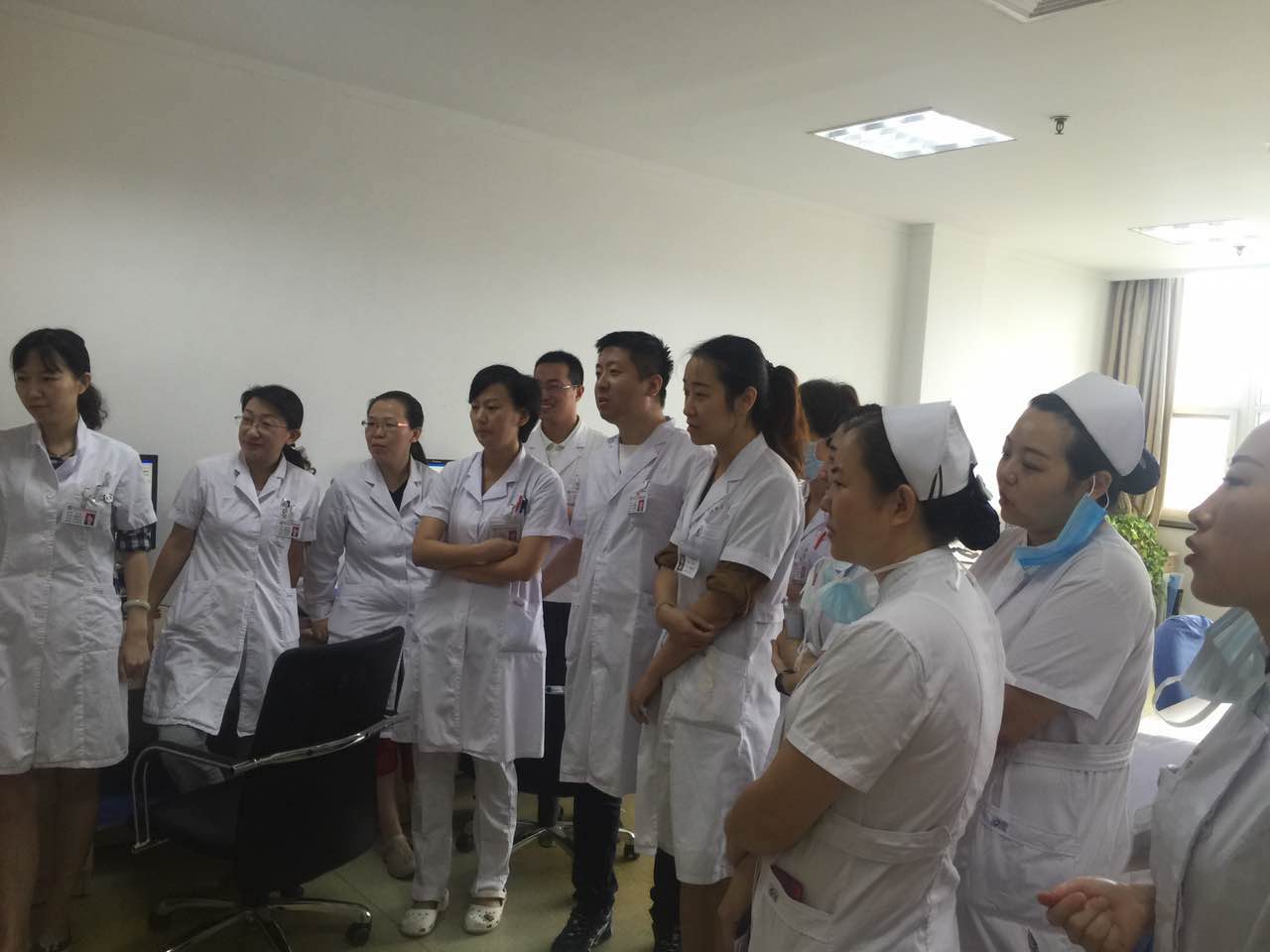 为提高科室医生的英语水平和业务能力,提升医护人员整体素质, 2017年9月以来,我院肿瘤内科三病区王志宇副主任和李文文护士长组织全体医护人员每天利用早晨交班后的十五分钟,在医办室进行英语学习。由两名医生带领医护人员学习医学类常见单词的发音、语法结构时态等。