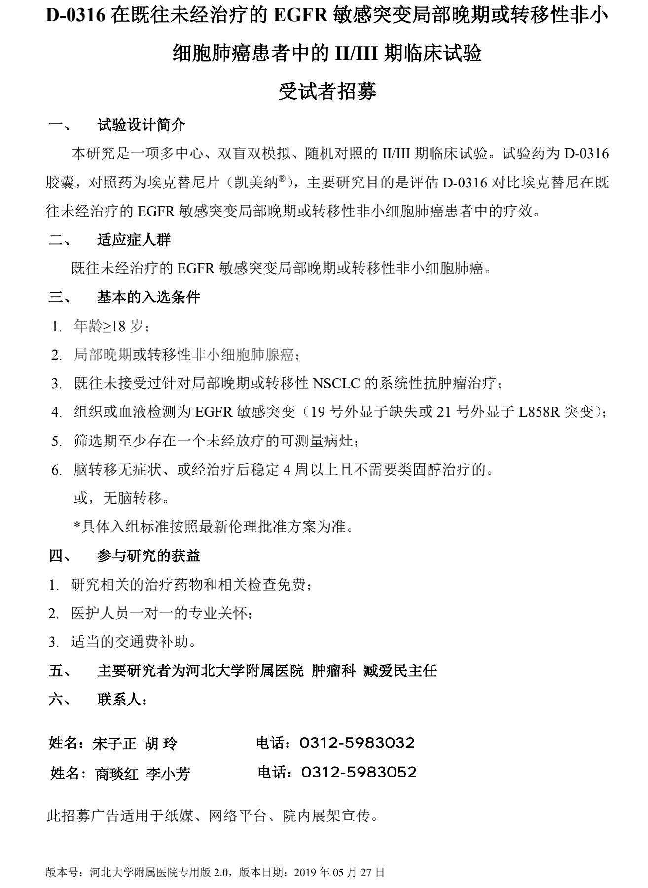 【临床试验招募】D-0316 在既往未经治疗的 EGFR 敏感突变局部晚期或转移性非小细胞肺癌患者中的 II/III 期临床试验