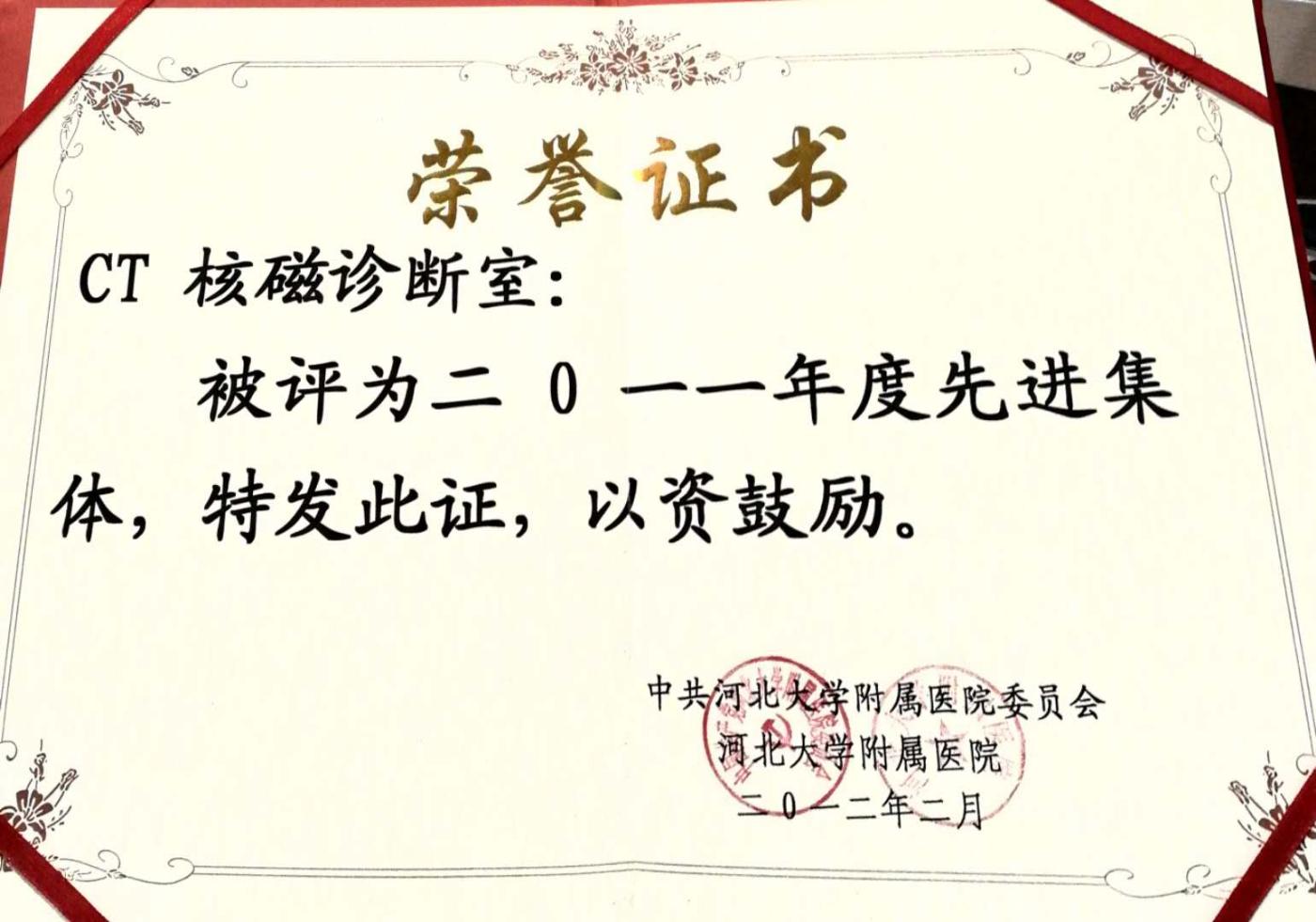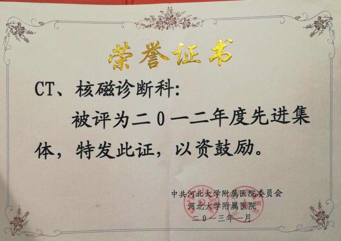2011、2012、2013、2014、2016年度河北大学附属医院先进集体奖