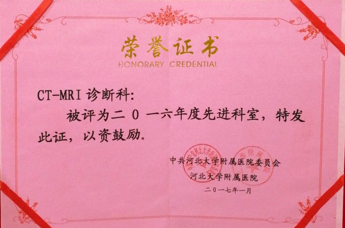2011、2012、2013、2014、2016年度河北大学附属医院优秀科室奖