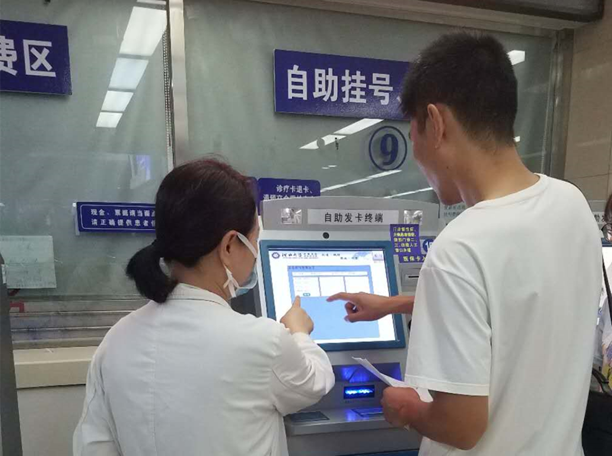 4、您可凭诊疗卡在各楼层的自助设备享受快捷的建卡、充值、预约、挂号、缴费、查询等服务。