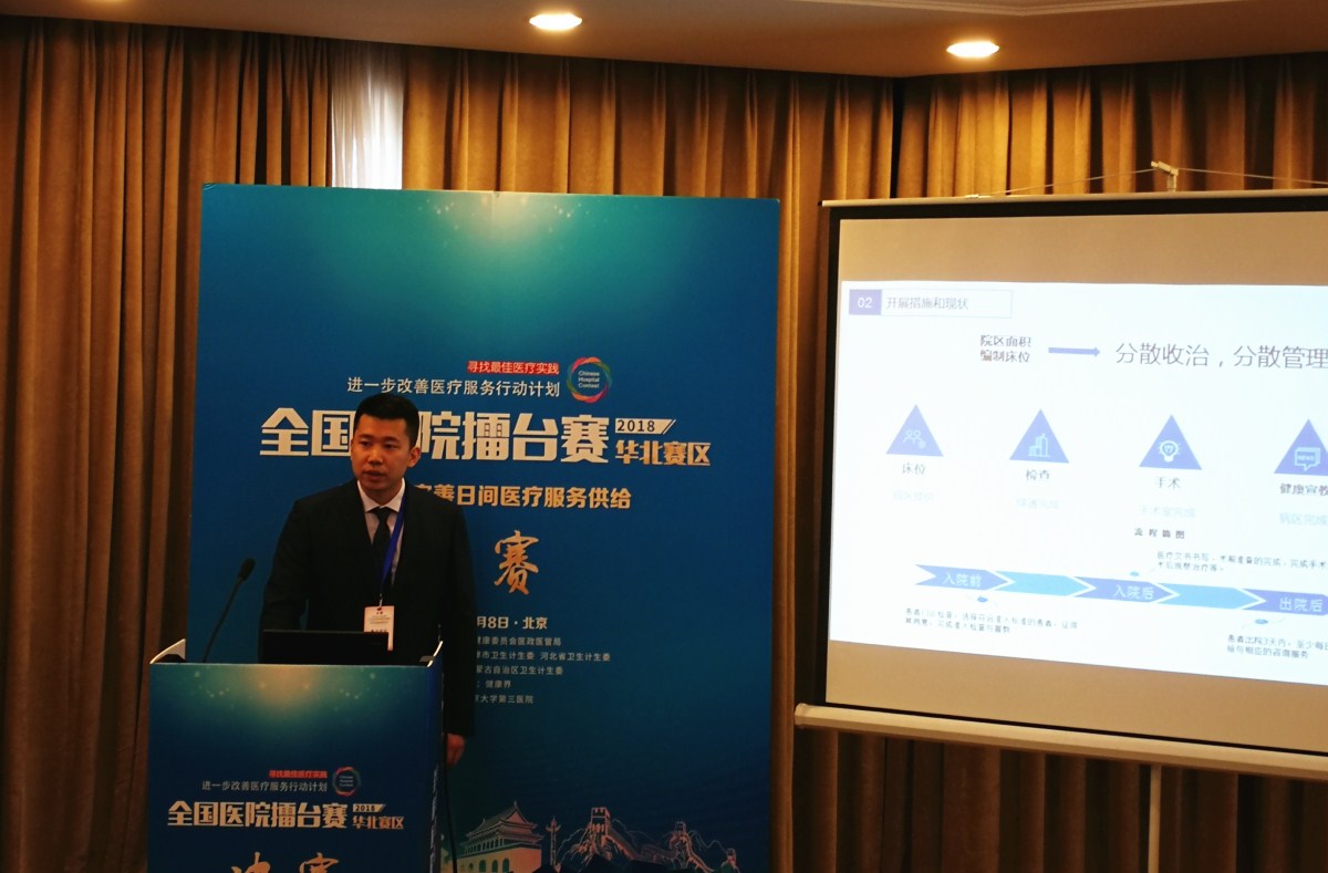 此次比赛,由院办室、医务处、文化建设中心共同制作了题目为《日间手术让社会、医院、患者共受益》的参赛作品。赴京参加现场决赛前,我院副院长程树杰对参赛的PPT和演讲内容进行了指导。决赛现场,共有来自北京、天津、河北、山西、内蒙古地区各大医院的百余位决赛选手比拼角逐,医务处王中阳代表我院进行了现场演讲。王中阳对我院日间手术的组织框架、管理流程、准入、奖励和取得的效益等情况进行了汇报。现场评委对王中阳的演讲进行了点评,条理清晰,逻辑严谨,汇报内容真实全面、分析到位,内容紧扣主题,细致充分地解释了患者、医院、社会三方如何共受益。