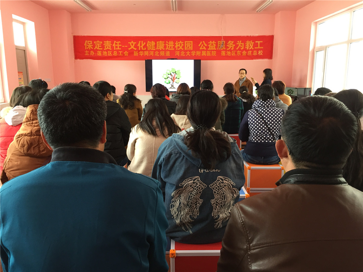 4月9日,“保定责任”健康专家、我院消化内科主任医师鲁素彩走进莲池区东金庄乡总校,为一线教职工进行了心身胃肠道疾病预防公益文化健康讲座。