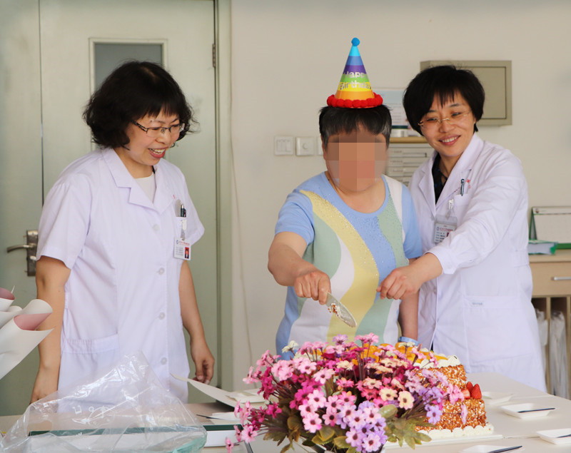 最为关键的是在医务工作者的关爱下,在家人的细心呵护下,邢阿姨比以往更加坚强、乐观,甚至经常帮助医护人员进行其他患者的心理疏导。也是从那时起,她把来到肿瘤内科的日子定为她新生开始,并和肿瘤内科一病区的医务工作者约好每五年过一次生日,而今年已是邢阿姨的“十岁”生日了。