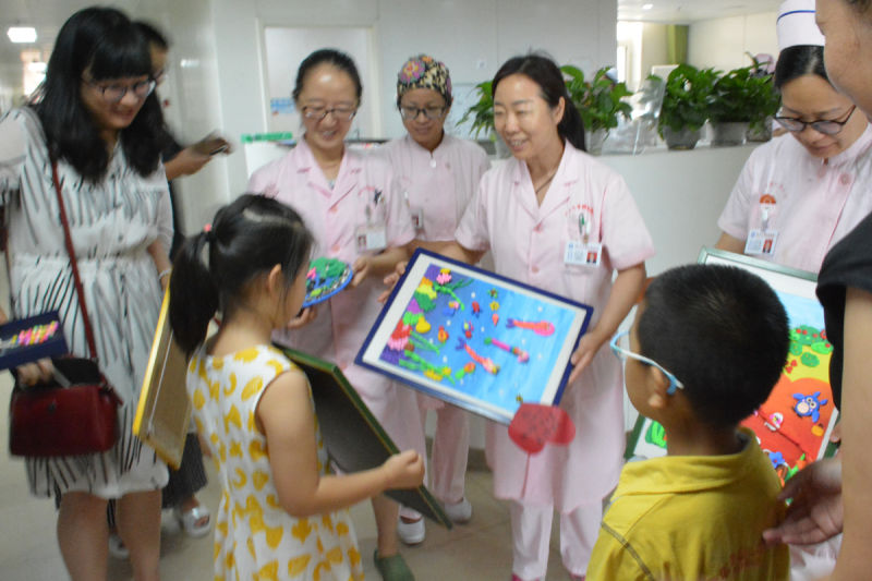 6月19日,保定市青年路幼儿园的小朋友和教师代表走进我院,将充满童真、童趣、童乐的儿童绘画及手工作品送到产科和儿科,以此共建共享大健康。