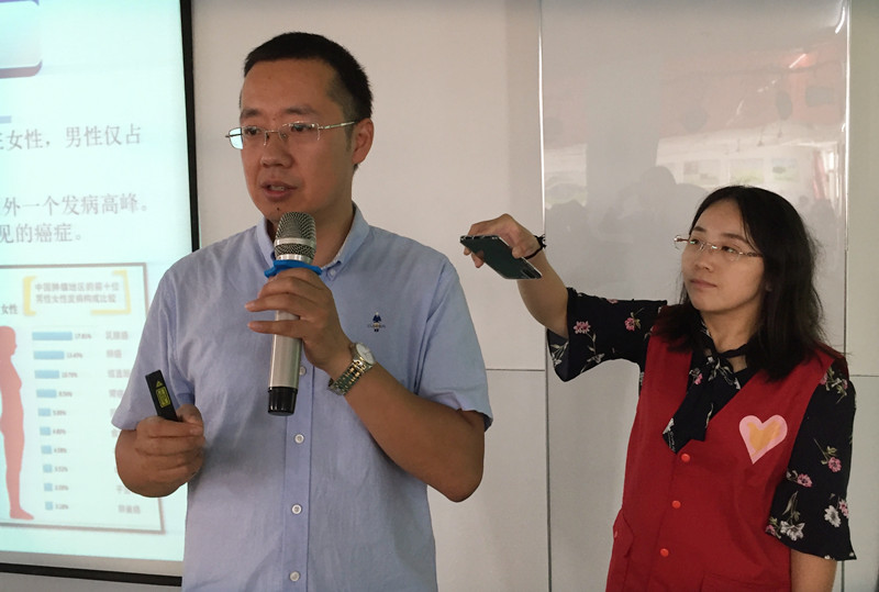 陈鹊汀首先叮嘱女职工,对婴儿如何科学哺乳、不挤压婴儿乳头;对少年期女孩要关注乳房、乳头发育,尽早纠正乳头异形;自己到中年要科学预防乳腺增生。同时,自己和自己的母亲,要正确识别乳腺癌早期症状。