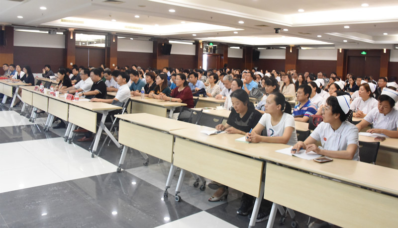 随后,我院院长张海松代表医院班子发表讲话,表示坚决拥护学校党委的决定,服从组织工作安排,并对学校领导一直以来对附属医院工作的关心和支持表示感谢。申世刚副校长接任附属医院党委书记之时,恰逢医院处于医改进入深水区、关键期新常态的适应期,他代表干部职工对申世刚书记所做的大量工作和付出的辛勤努力表示崇高的敬意和衷心的感谢!在迎接中华人民共和国成立70周年之际,我院即将迎来110周年院庆,代表全院干部职工真诚地欢迎倪志宇书记加入附属医院的大家庭,并严格落实公立医院党委领导下的院长负责制,积极支持配合倪志宇书记工作,精诚团结,和衷共济,带领全院干部职工,努力把医院建设成为一个人民群众信赖满意的高水平医院。