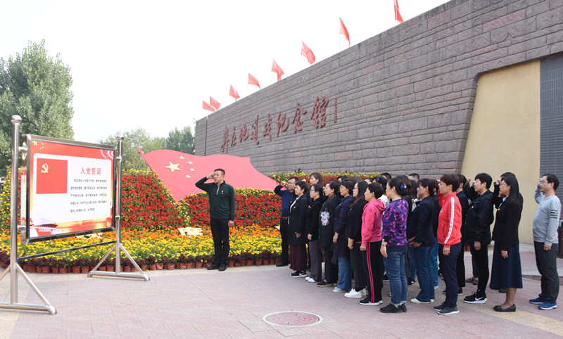 到达纪念馆后,第二党总支部书记陈健带领大家,重温入党誓词,缅怀革命先烈丰功伟绩。