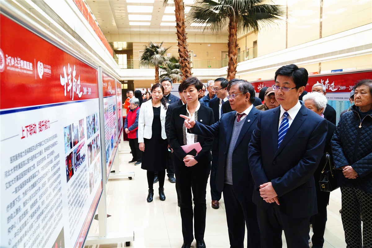 纪念大会前,郭健、申世刚、倪志宇和与会老领导、老专家、社会友好人士一起观看了我院“十年奋进”主题发展成就图片展。