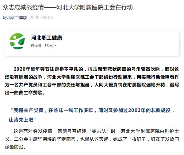 河北职工健康—众志成城战疫情——河北大学附属医院工会在行动