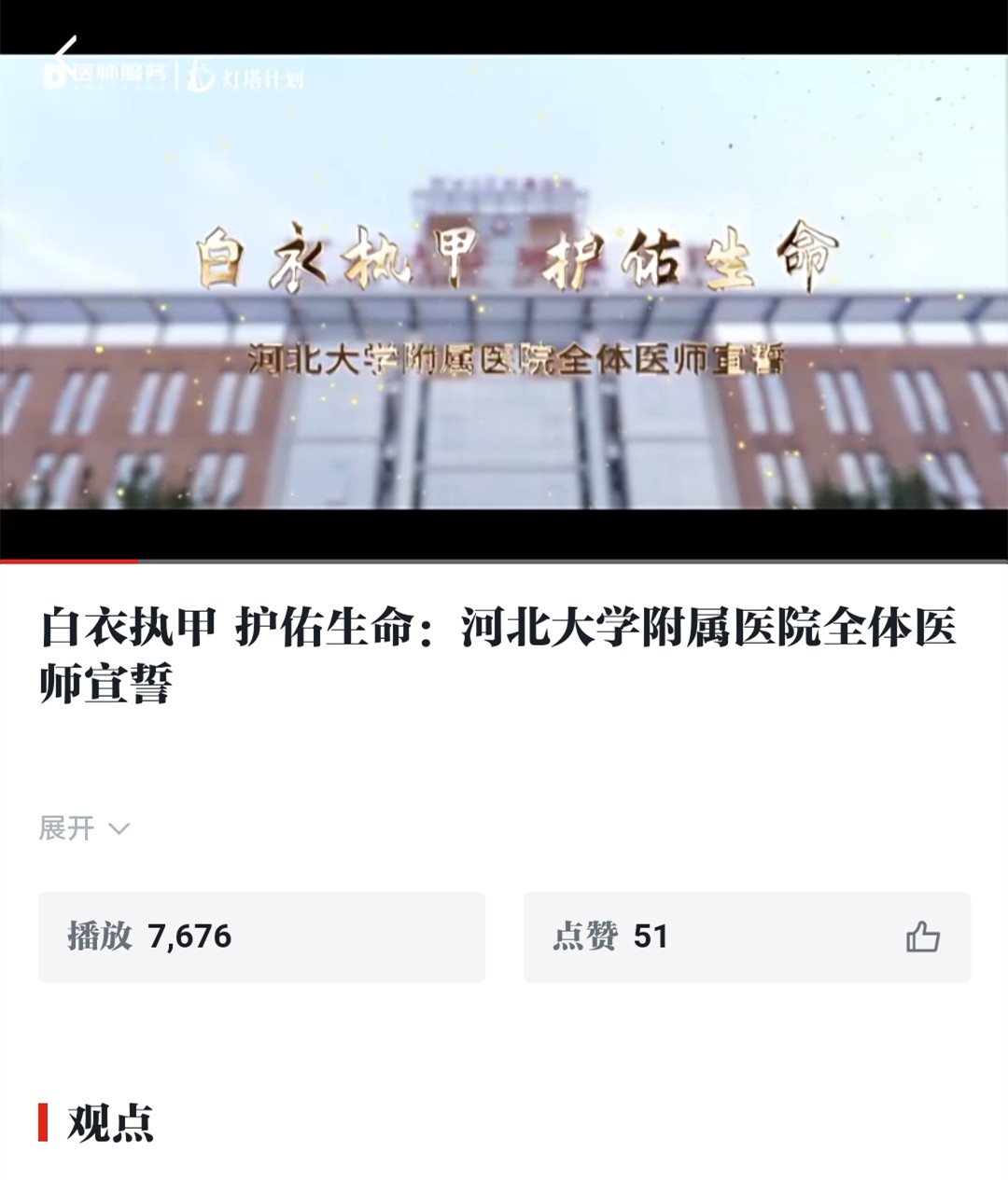 “学习强国”发布我院全体医师宣誓视频: