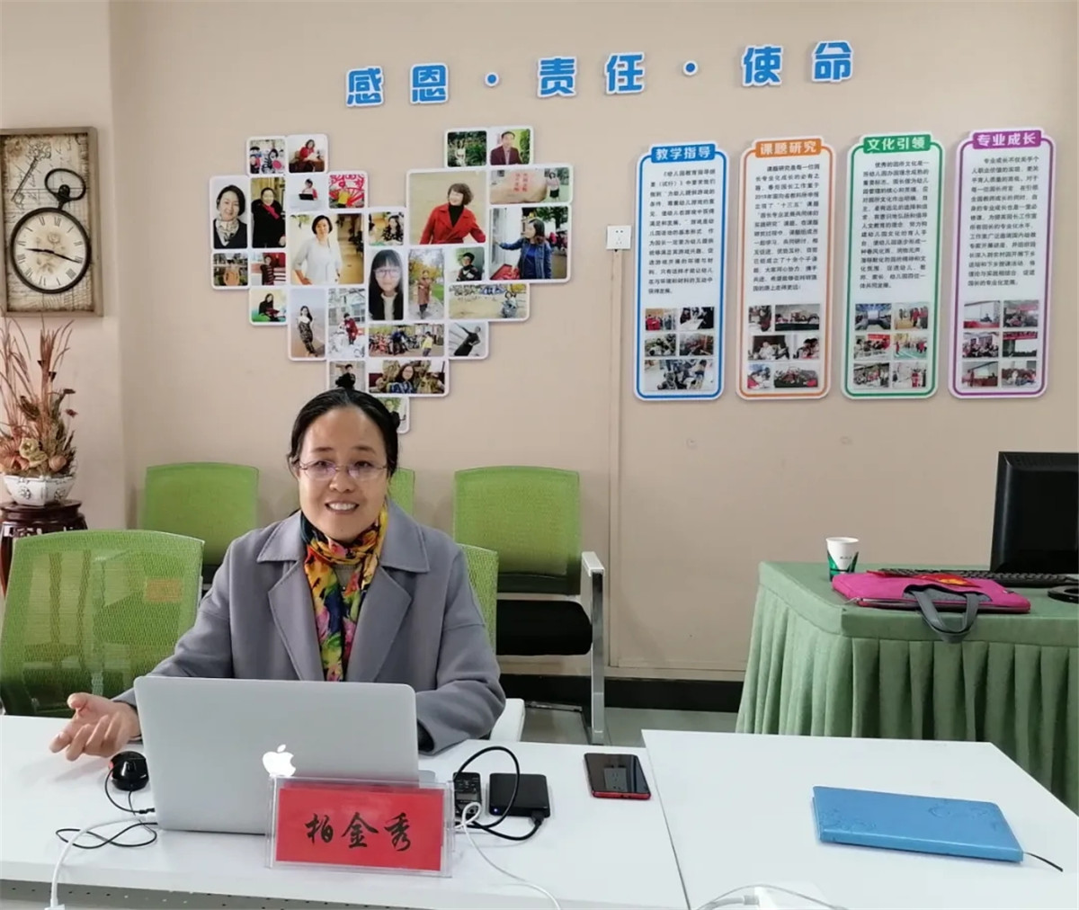 10月30日上午,“保定责任”健康专家、我院儿科主任柏金秀,“保定责任”公益文化健康服务平台策划人、中国医药教育协会慢病防治工作总站秘书长魏巍走进保定市青年路幼儿园,以《2020秋冬季学龄前儿童生活保健及疾病预防》为题,于现场及园所钉钉群直播方式面向幼儿教师、全体幼儿家长,进行公益文化健康讲座。