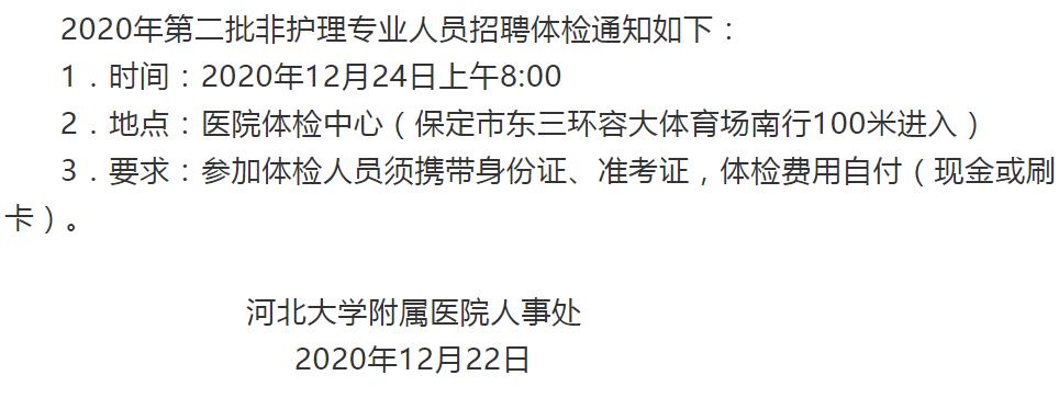 河北大学附属医院2020年第二批非护理专业人员招聘体检通知