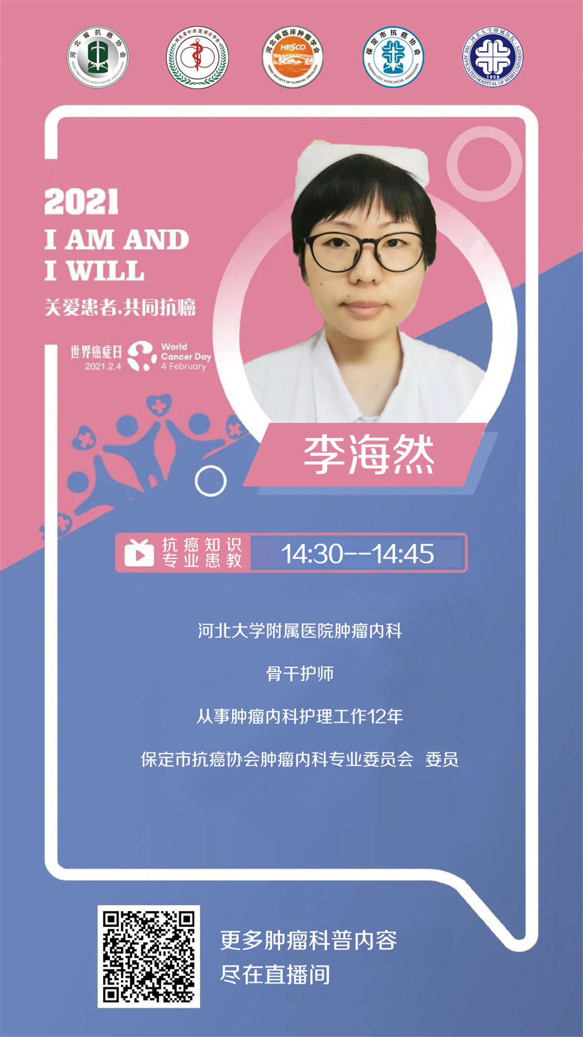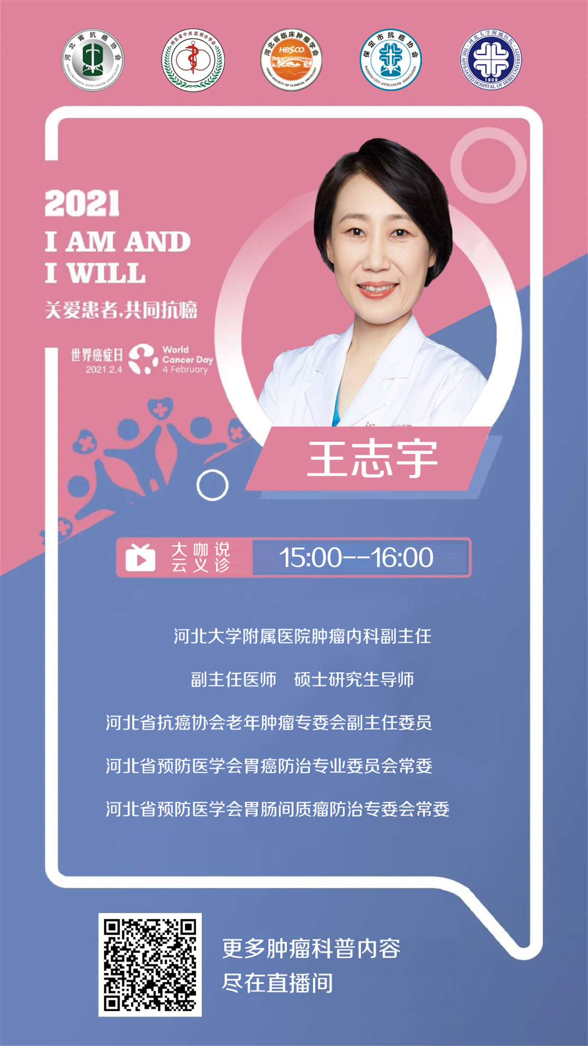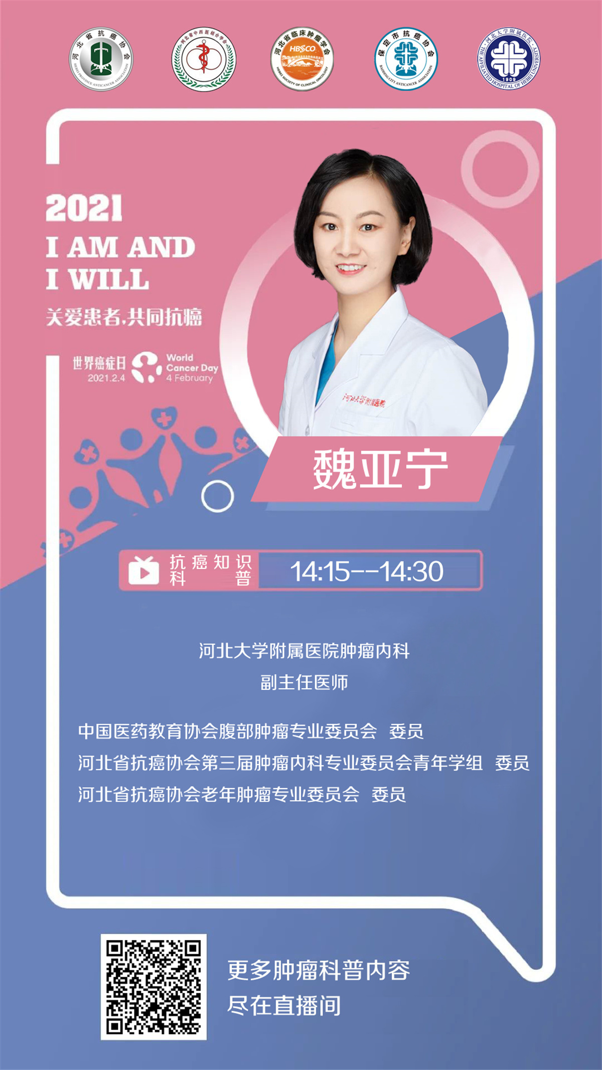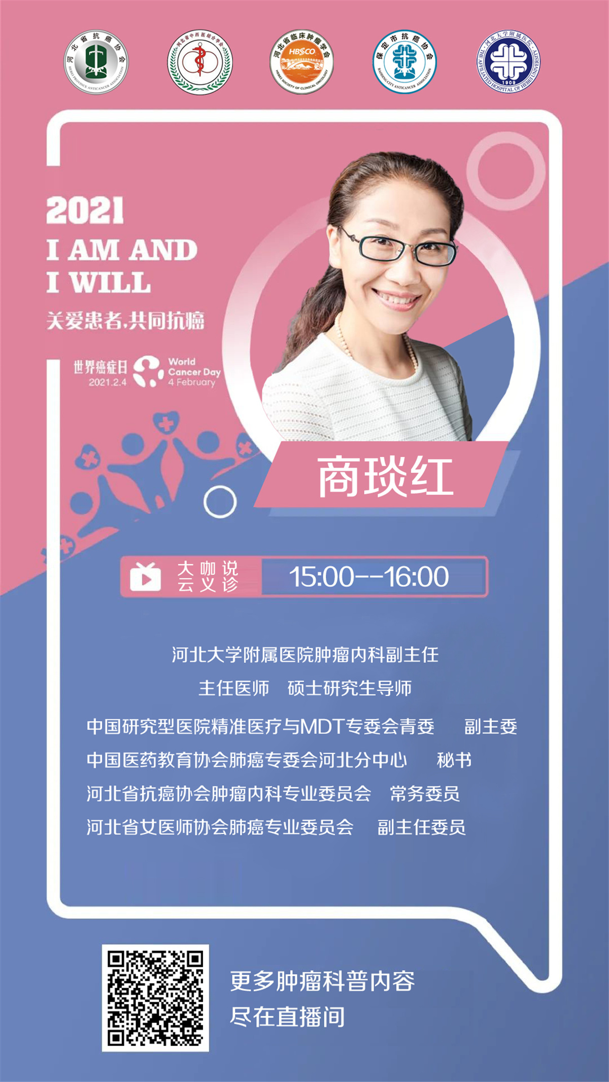 在2021年2月4日—国际抗癌联盟(UICC)“世界癌症日”即将到来之际,我院将开展“关爱患者,共同抗癌(Iam and Iwill)”公益科普活动,帮助广大群众关爱健康,远离癌症,帮助癌症患者规范诊疗、尽快康复!呼吁大家共同关注,携手抗癌。为满足疫情防控常态化的需求,本次活动的科普环节采用线上方式,请广大市民通过线上直播观看!