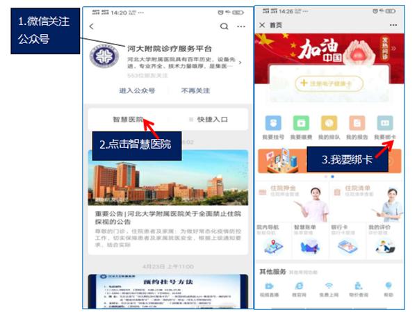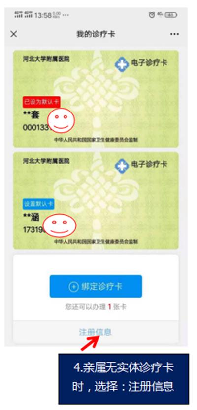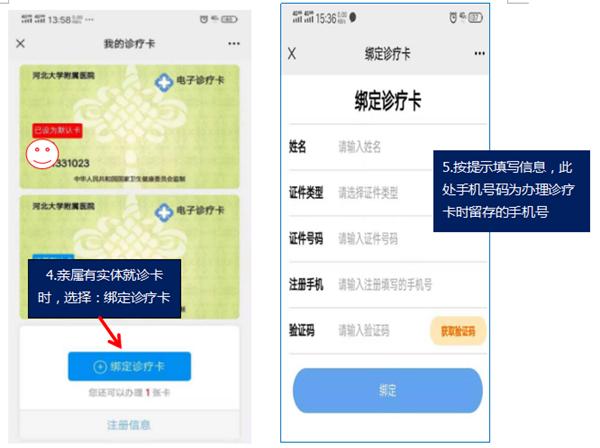 为解决老年人不会智能手机,又能享受到智能服务的便利,我院开通线上“亲情互助”通行功能,将亲属就诊信息绑定在子女手机上,患者本人办理一张实体就诊卡,子女用手机在河大附院诊疗服务平台公众号上完成挂号、缴费,父母凭实体就诊卡在医院可直接看病、检查、取药……整个智能操作过程由子女在手机上远程完成,老人现场就诊即可,同时子女还能收到老人就诊流程中各环节的提醒信息,检查、检验结果和开药后的用药指导等就诊信息,完美解决老人不会使用智能设备,但又能享受智能设备的便利。