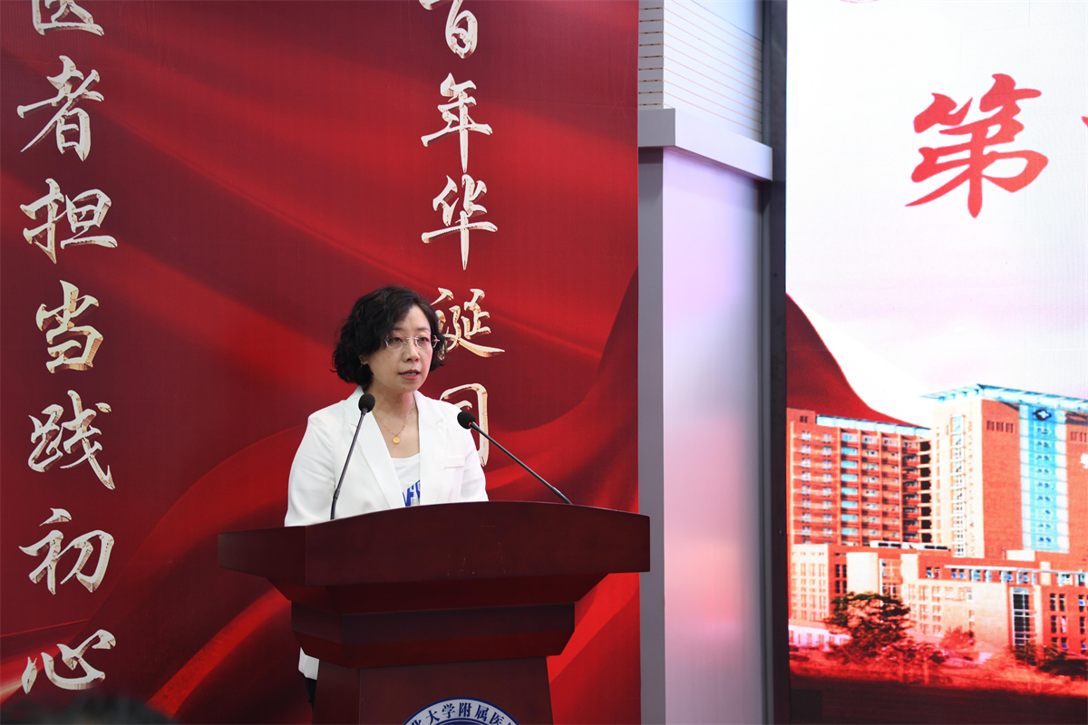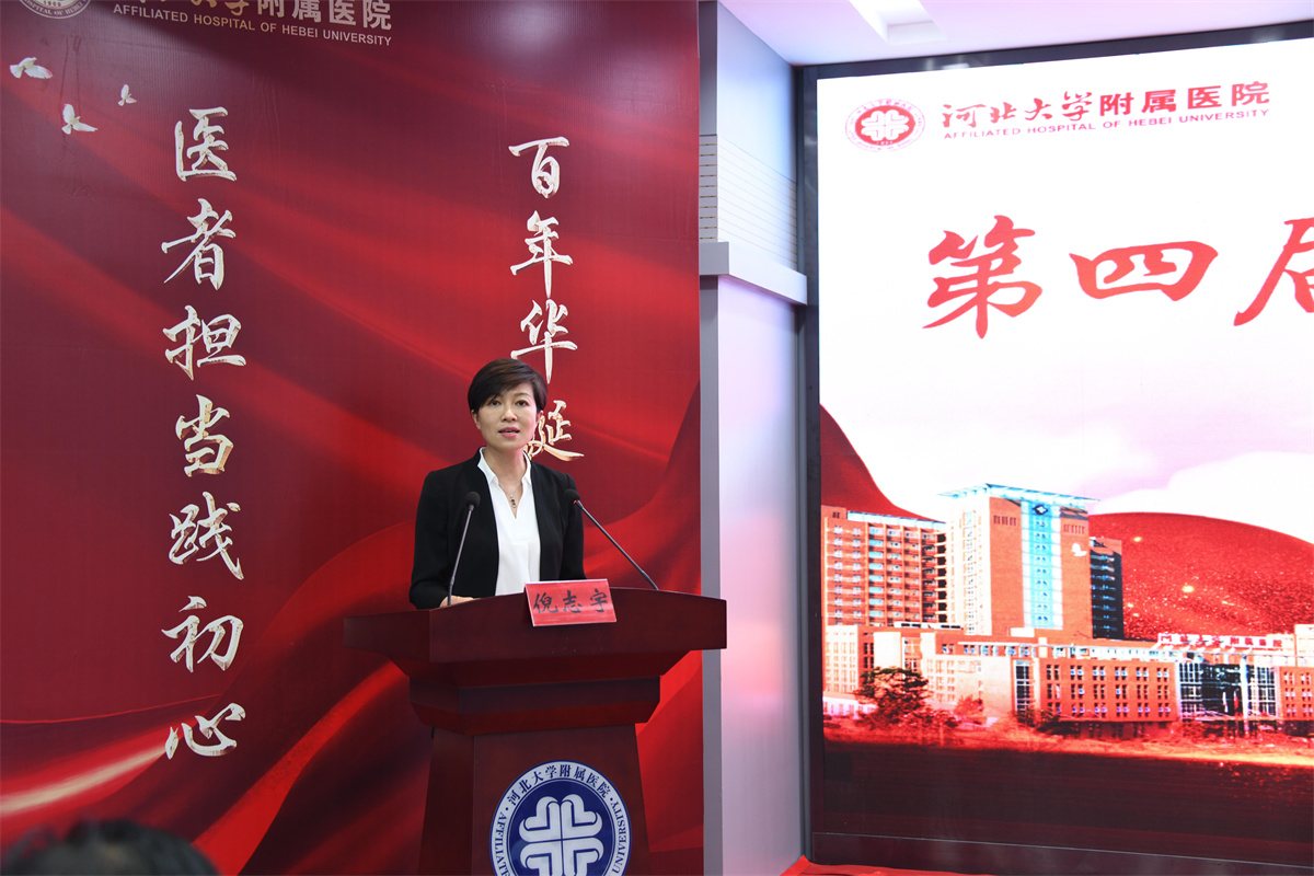 倪志宇在讲话中代表河北大学党委和医院党委向辛勤工作的全院医师、老专家和离退休医师致以节日的祝贺和诚挚的问候,充分肯定了全院各级医师在疫情防控和医疗、教学、科研工作中做出的突出成绩和重要贡献,向受表彰的医师及医疗团队表示祝贺,向始终为医院发展建设倾注心血的老专家表示由衷的敬意,向执行援疆、援外医疗任务的医师致以良好的祝愿。倪志宇指出,今年是中国共产党成立100周年,全院医师学党史、铭初心、担使命,坚持人民至上、生命至上崇高理念,护佑人民群众健康,为医院高质量发展做出了自己的贡献。她勉励全院各级医师,一要以德为先,坚定理想信念,加强医德医风建设,进一步改善行业作风。二要以技为本,促进科研创新,满足人民群众对医疗服务的需求,促进医院内涵建设。三要以勤为勉,积极笃行实干,推动医教研协同高质量发展。