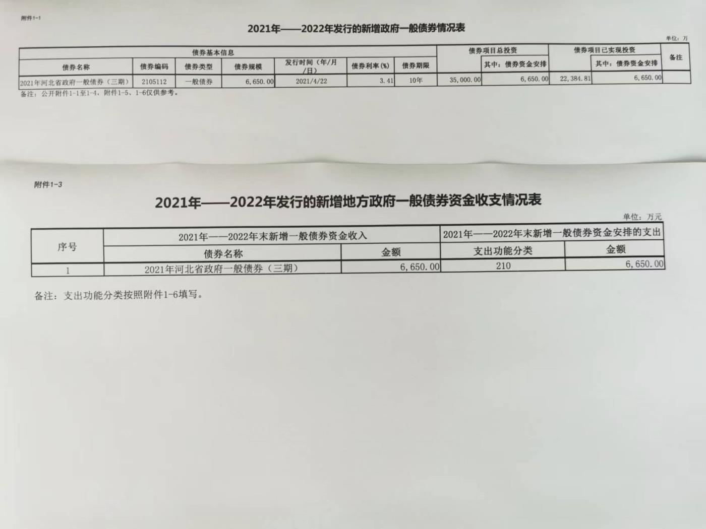 2021年—2022年发行的政府一般债券情况表