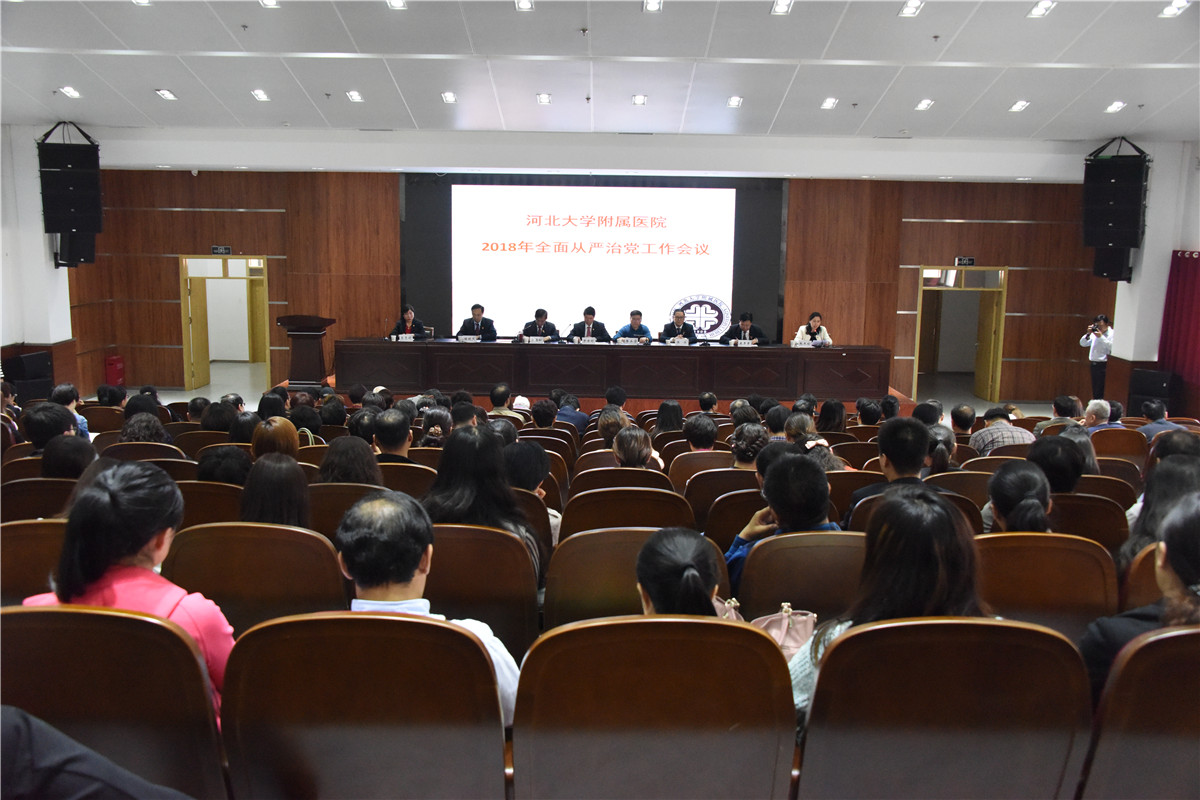 为深入学习贯彻党的十九大精神、十九届中央纪委二次全会内容、省卫生计生系统及河北大学党委从严治党工作会议精神,4月19日下午,我院召开了2018年全面从严治党工作会议,河北大学副校长、附属医院党委书记申世刚,河北大学纪委副书记陈永学和附属医院领导班子成员及全院中层干部、支部书记近300人参加了会议。会议由院长张海松主持。