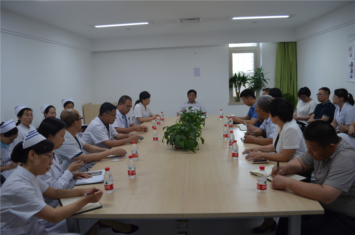 查房结束后,院领导与相关人员在基本外科病区示教室开展围绕“环境”为主题的现场办公会,在场各位科主任和护士长积极发言,提出了科室存在的安全隐患、需协调的问题和合理化建议,各相关职能处室负责人针对所提问题一一作了现场解答。