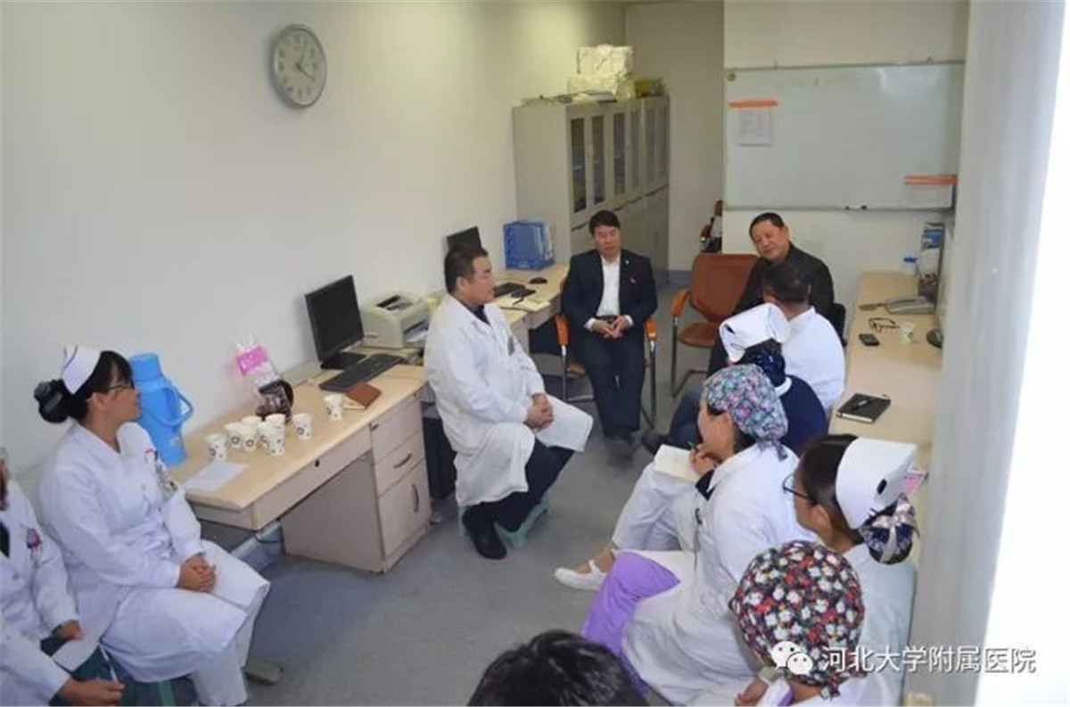 10月23日,河北大学副校长、附属医院党委书记申世刚走访了医院急诊医学科,开启“书记走基层”活动。党委副书记陈冰、第二党总支部书记陈健以及党办室工作人员随同调研。