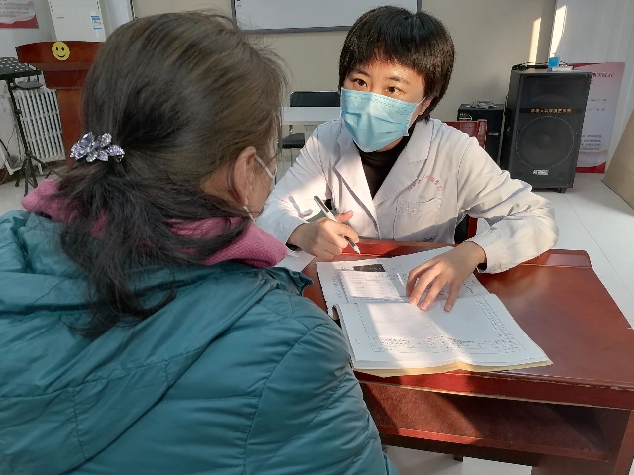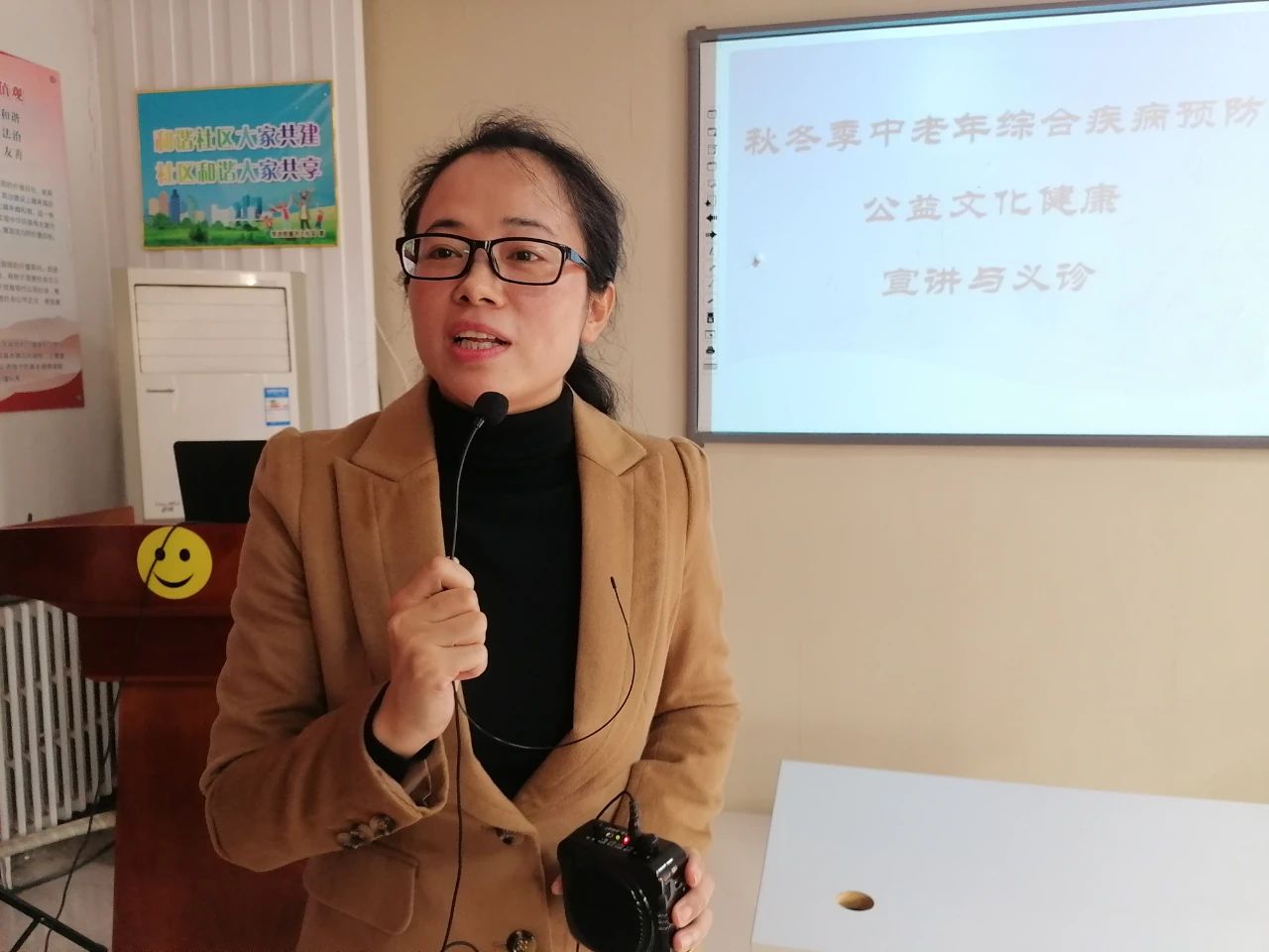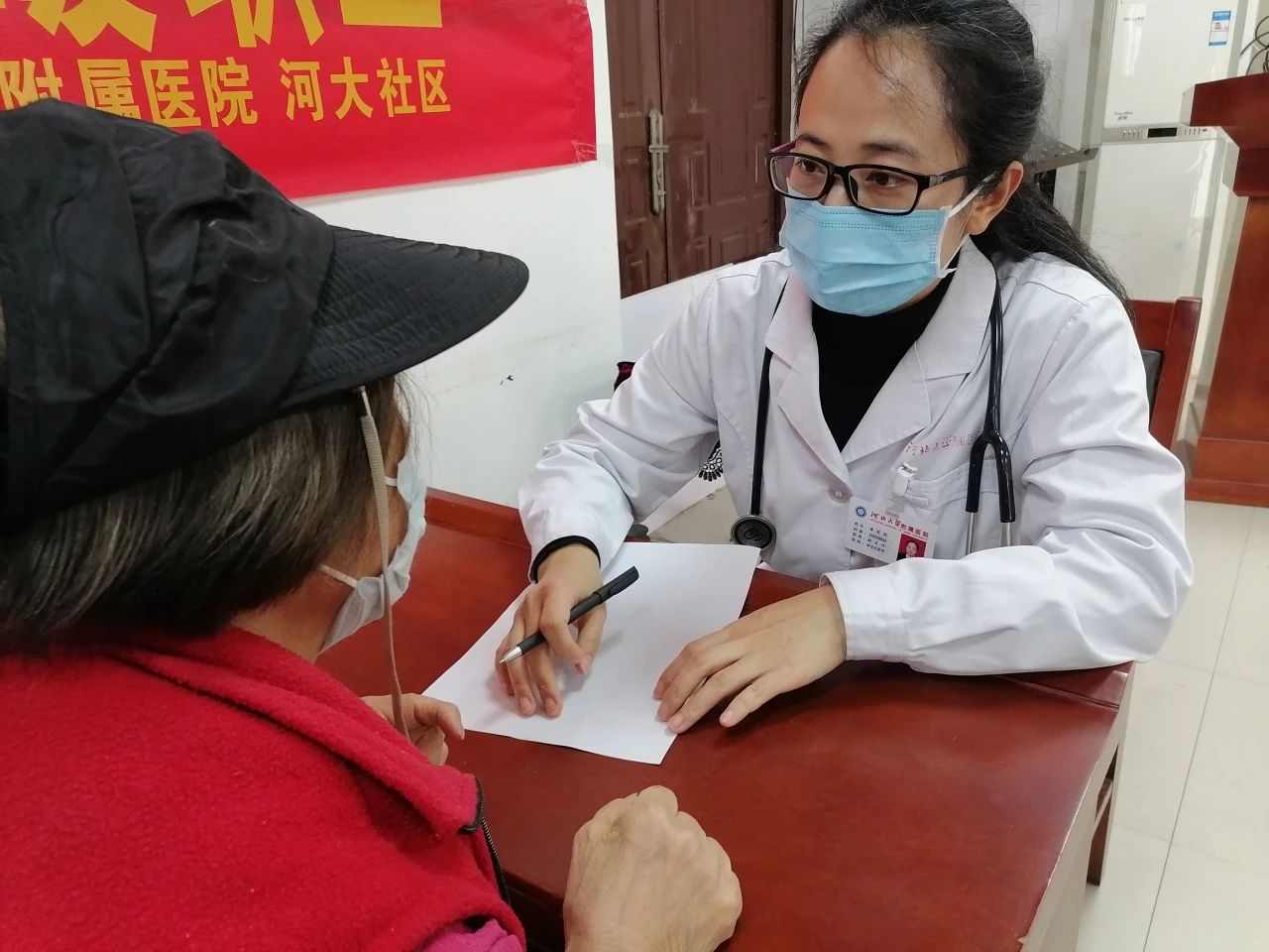 10月25日,中国医药教育协会学雷锋志愿服务5队2名队员:“保定责任”莲池区职工健康工程健康专家、副主任医师、河北大学附属医院(以下简称“河大附院”)老年医学科副主任谭莉莉,主治医师、河大附院老年医学科骨干医师臧莎莎,在河大社区新时代文明实践站,以《科学养老 幸福延年》为主题,为社区河北大学离退老专家、老教授等居民,社区工作者、社区志愿者等,进行秋冬季中老年人综合疾病预防公益文化健康宣讲与义诊服务,以此服务中老年人安康,助力社区工作者,不断提升社区助老、关老大健康服务能力。河大社区党委副书记何昕全程参加、副主任赵俊娟全程做服务保障,保定市妇联常委、“保定责任”莲池区职工健康工程策划人魏巍全程主持。