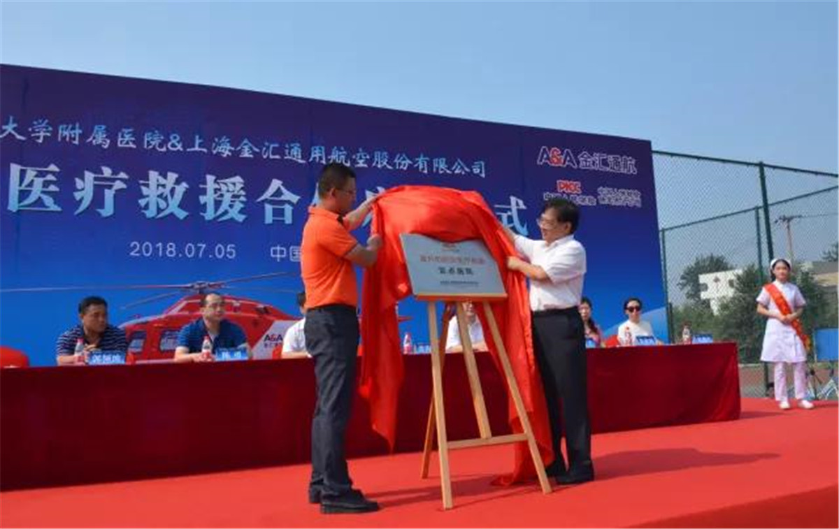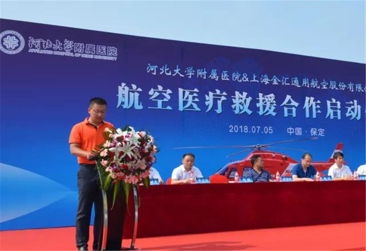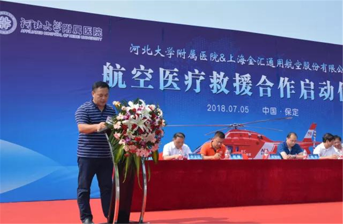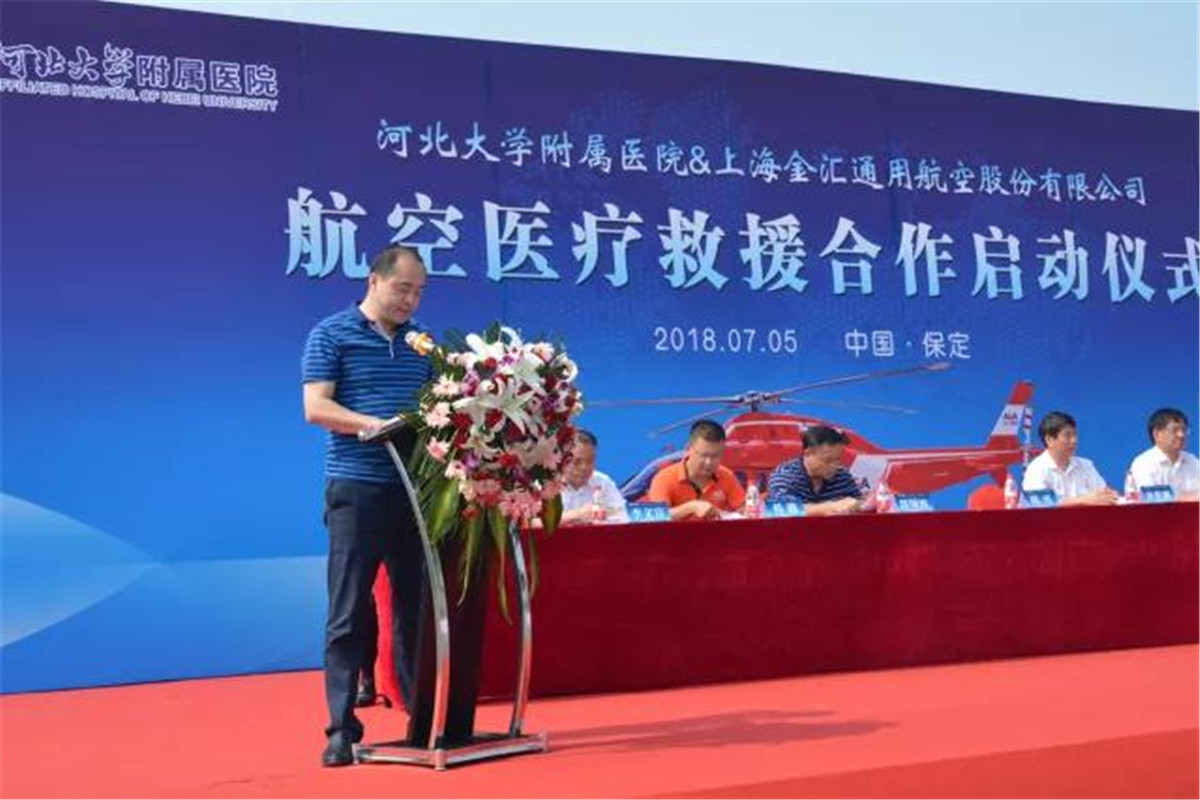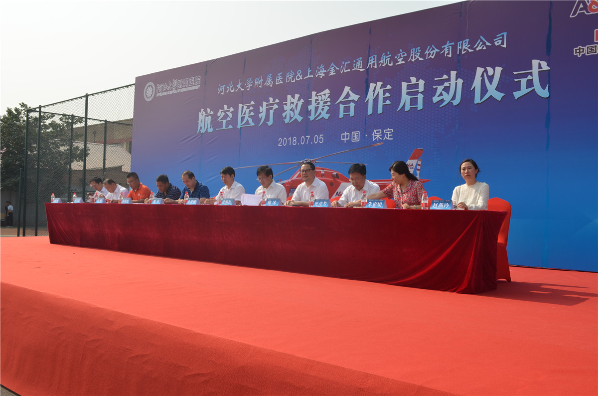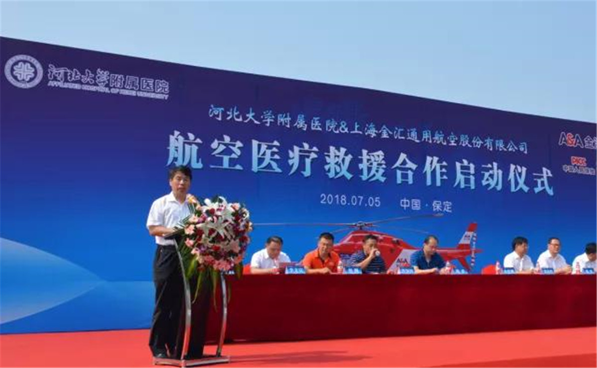 7月5日上午,河北大学附属医院和金汇通航公司举行了航空医疗救援合作启动仪式。