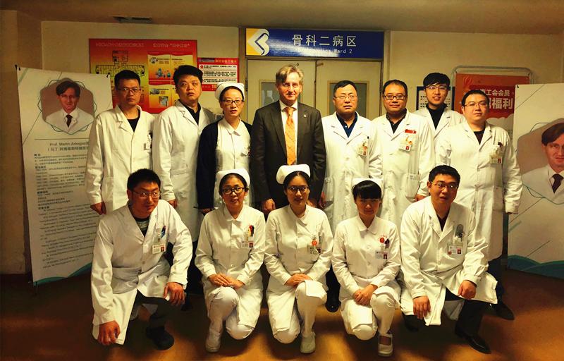 会议期间,焦建宝及医护人员与Prof.Martin Arbogast教授针对膝关节置换假体选择、围手术期抗生素的应用、术后病人康复训练等多个方面进行了探讨与交流。
