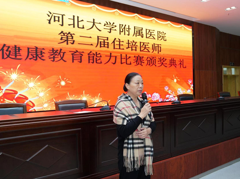 为贯彻习近平总书记提出的实施健康中国战略方针,提高我院住培医师对临床患者的健康宣教能力,促进我院住院医师规范化培训工作的多样化,更好地锻炼学员的表达和沟通能力,增进学员之间的友谊,共同创造良好的学习环境和学习氛围,12月28日,我院举办“河北大学附属医院第二届住培医师健康教育能力比赛”,医学院副院长张春舫出席比赛,消化内科主任医师鲁素彩、内科基地赵学琴主任、外科基地方川主任、妇产科基地梁义娟主任、儿科基地柏金秀主任、放射科基地赵见喜主任、康复科基地杨信才主任出席并担任专家评委,各参培学员班主任根据参赛条件严格筛选、积极组织学员们参加了此次比赛。全科基地肖暖主任、神经外科副主任医师田少辉担任主持。