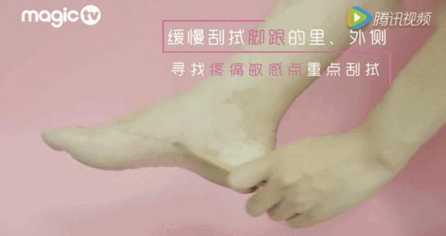 方法很简单,缓慢刮试脚跟里外侧,把脚跟梳热了就行。