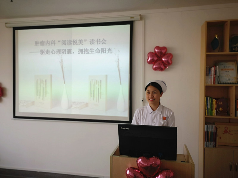 活动开场,肿瘤内科一病区护士长宋艳茹进行了乳腺癌患者心理管理的知识分享,并宣布肿瘤内科第一期“阅读悦美”读书会正式起航,本次读书会主题为“驱走心理阴霾,拥抱生命阳光”,号召大家通过读书,勇敢面对挫折,树立战胜疾病的信心,通过阅读,重新遇见一个自信、勇敢、坚强、充满正能量的自己。