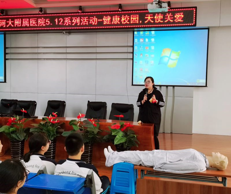 为普及卫生保健知识、急救技能及中医药常识,提高校园中学生自我防病意识和急救能力,在国际护士节来临之际,我院护理部组织了以“健康校园,天使关爱”为主题的健康知识进校园活动。